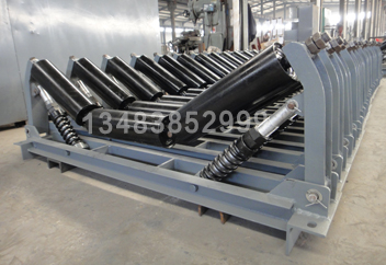 以壓力彈簧為緩沖力源,利用壓力彈簧被壓縮時(shí)會(huì)隨高度的降低而彈力遞增的性能,使托輥組可隨著所受沖力的增大而緩沖彈力遞增,能有效的抵消物料下落的沖擊力,起到保護(hù)膠帶的作用。(專利號(hào):ZL94247277.2)